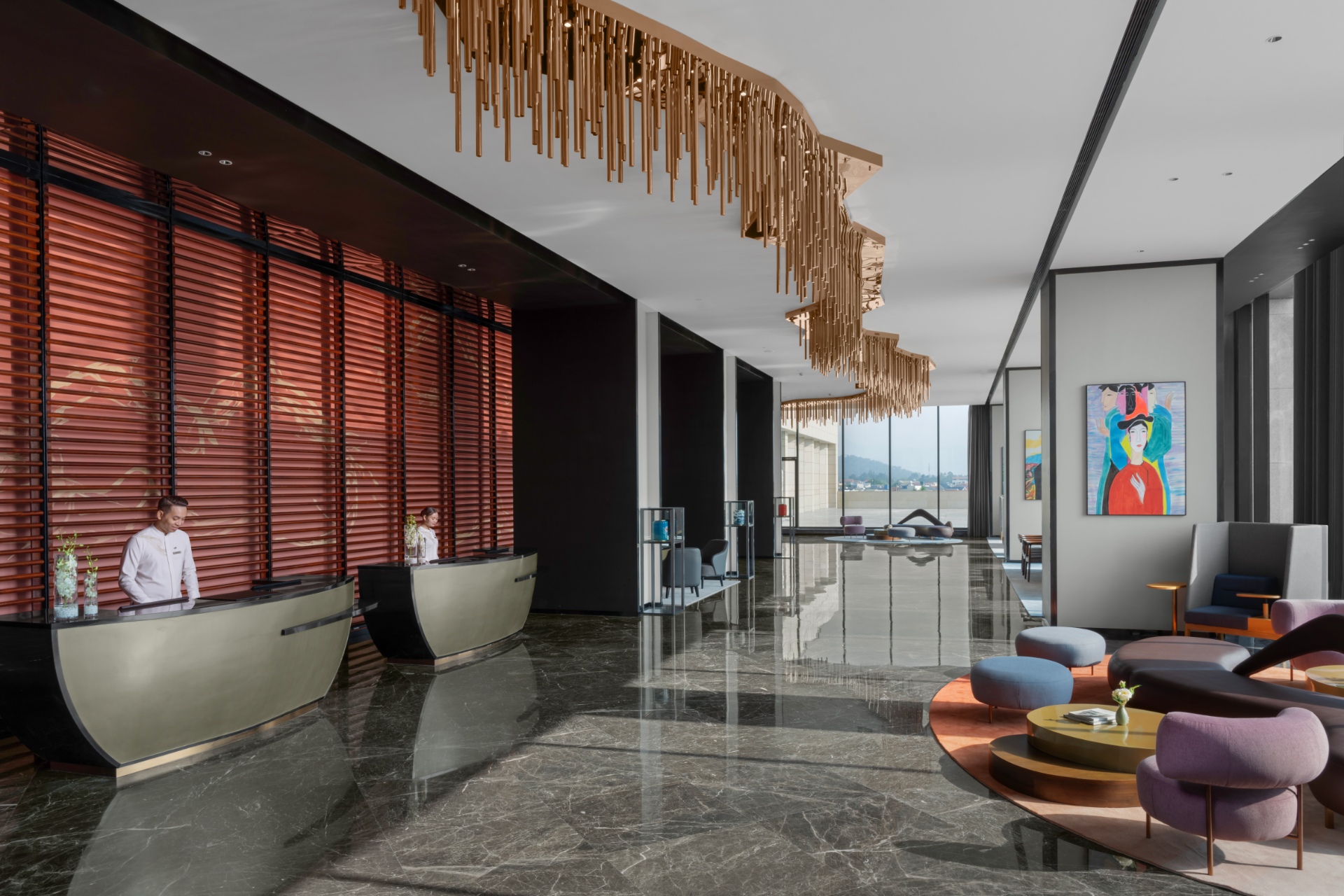 The hotel theme inspired by the surrounding Nature: Red river & Tam Dao mountain and it brings a fresh air to the design by combining Old & New. Business people is the main guest type in this hotel and they will have many spaces to discover & relax.